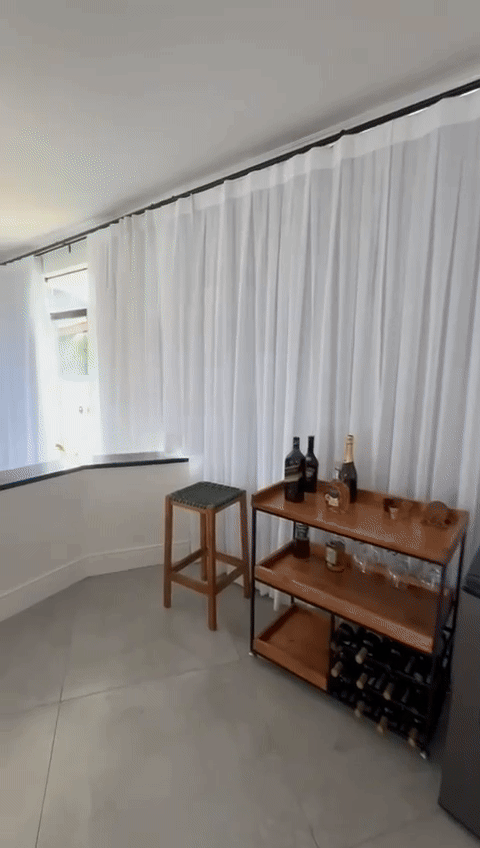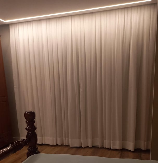 Cortina com dobras suaves em forma de onda, ideal para um visual moderno e clean.