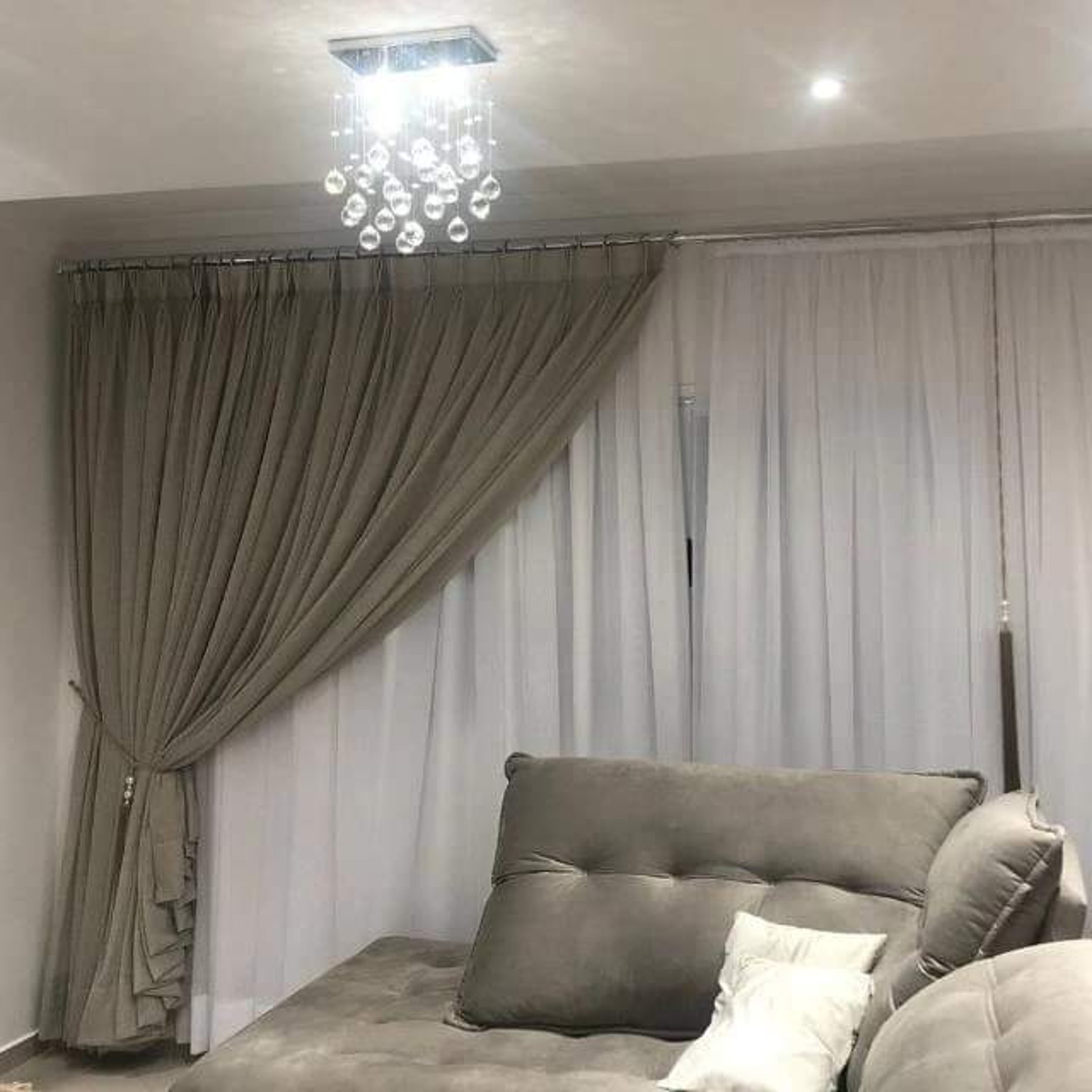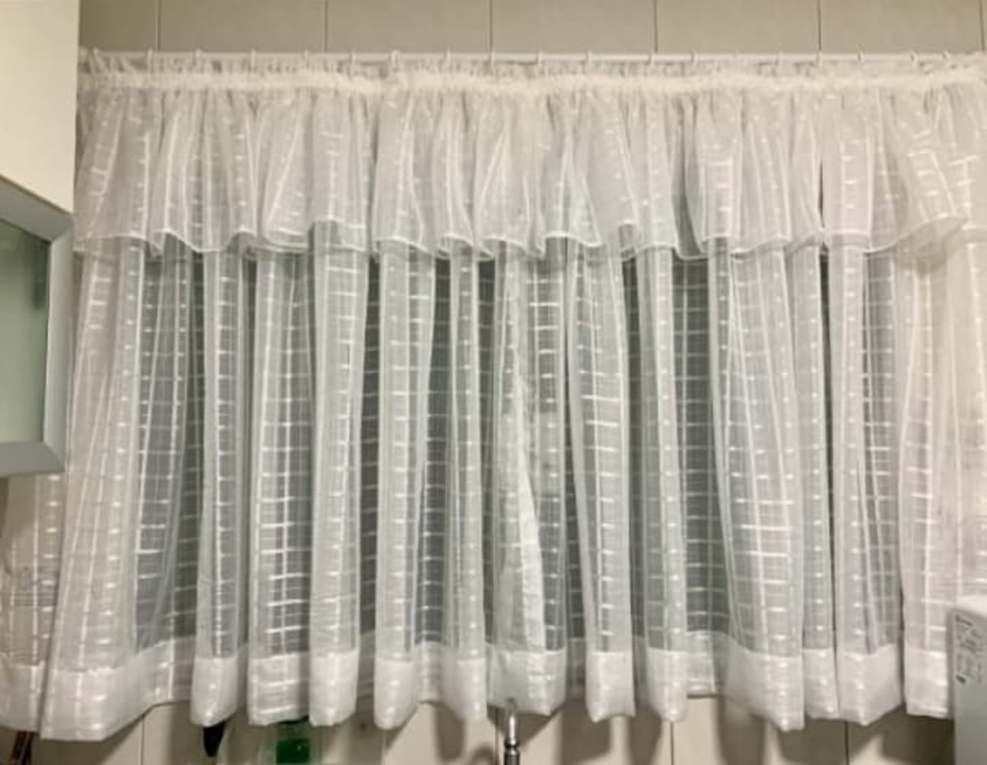 Cortina delicada com tecido franzido, criando um efeito de ondas suaves