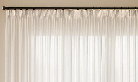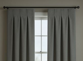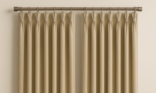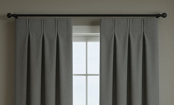 Cortina clássica com pregas uniformes e alinhadas, perfeita para ambientes refinados.