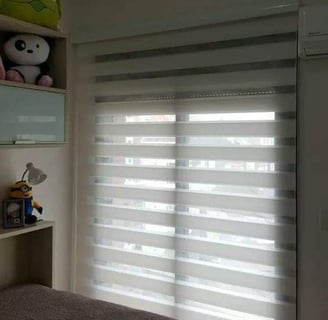 Tiras alternadas que controlam luz e privacidade com um toque moderno.